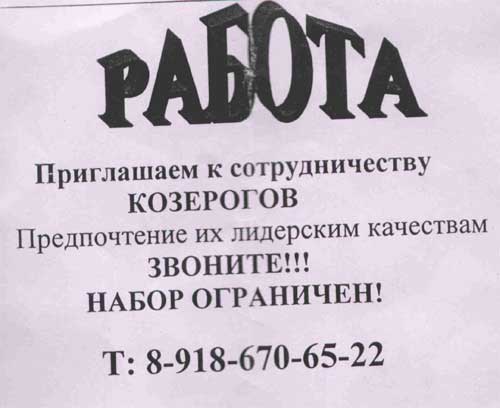 Объясняю. Им не Козероги на работу нужны. Им козлы нужны, которые купятся на такую дурацкую лесть и будут пахать за ничтожные деньги.