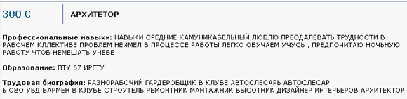 Искали тут архитектора на фирму, сообщила Yana. И пришло такое резюме, что отказать этому человеку не было просто никакой возможности...