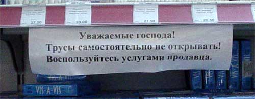 И действительно! Мало ли что вдруг неожиданного обнаружится в трусах! Лучше иметь поблизости надежного продавца, который поможет в случае каких-то проблем...