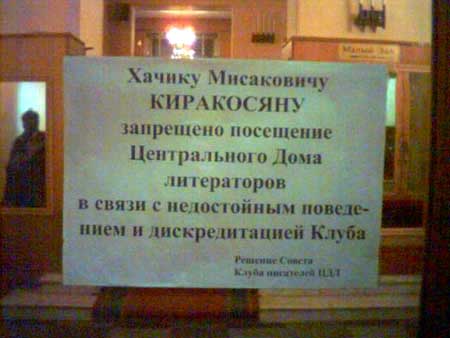 В противном случае придется на них наслать Хачика Мисаковича Киракосяна, а это такой человек, такой человек... В общем, страшный человек. Никакому Дому литераторов не пожелаешь такого человека...