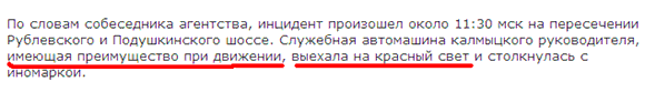 Хотя тут, конечно, не смеяться нужно, а плакать, считает Jaros. Тем более что у нас в Москве, как известно, действуют калмыцкие правила дорожного движения - их хорошо знают гаишники, но не автомобилисты. По таким правилам машина, в которой сидит какой-нибудь хрен с горы, имеет преимущественное право при проезде на красный свет по отношению к чуть меньшим хренам с горы. А простые водители не имеют права ездить на зеленый - потому что разъездились тут, всяким хренам дорожку загораживают.