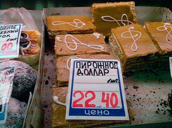 Михаил прислал пирожное доллар. Там, правда, нарисован скрипичный ключ, но это и есть - наш российский доллар.