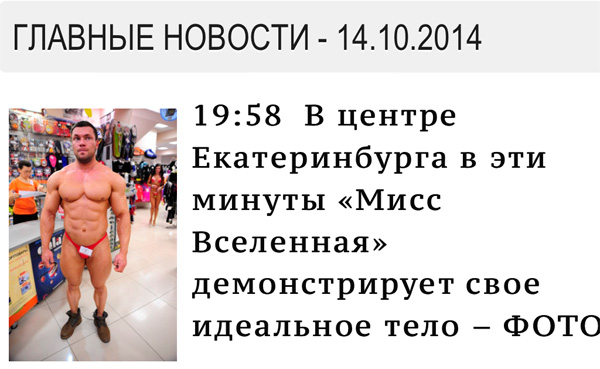 Сказать по правде, у мисс Вселенной города Екатеринбурга тело не такое уж и идеальное. Впрочем, если ниже коленей у него протезы, то претензия снимается.