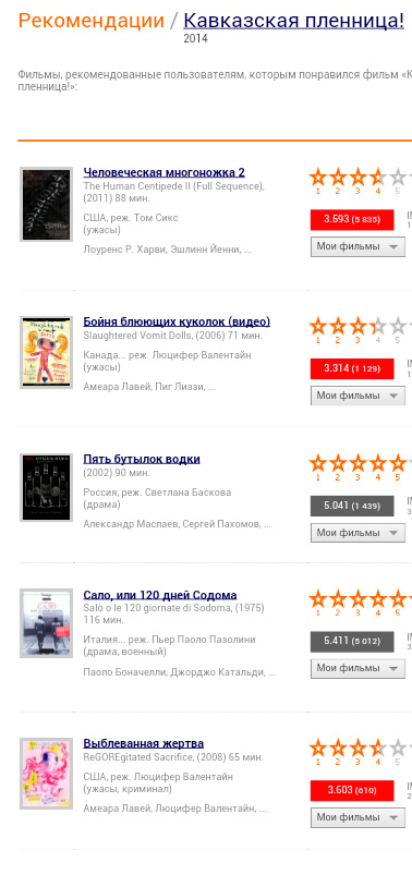 На "Кинопоиске", замечает Наталия, очень интересные рекомендации для тех, кому понравился фильм "Кавказская пленница 2014".