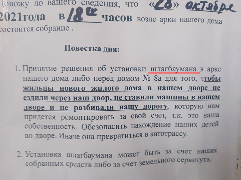 А на того, кто будет ездить мимо Шлагбаумана, наложат епитимью в виде сервитута.