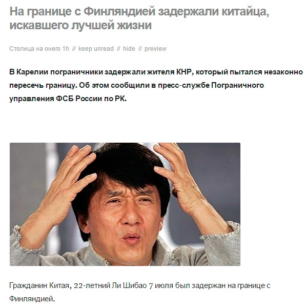 Про бедного китайца напомнило старый советский анекдот: "Мы ведем наш репортаж с китайско-финской границы".