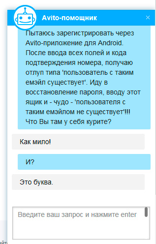 Alex Lonewolf: В поддержке Avito очевидно сидит робот. При том довольно примитивный.