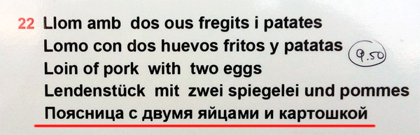Если вы проголодались, замечает кот Бублик, то самое время отведать в испанском ресторане поясницы с двумя яйцами и картошкой! Блюдо богов!