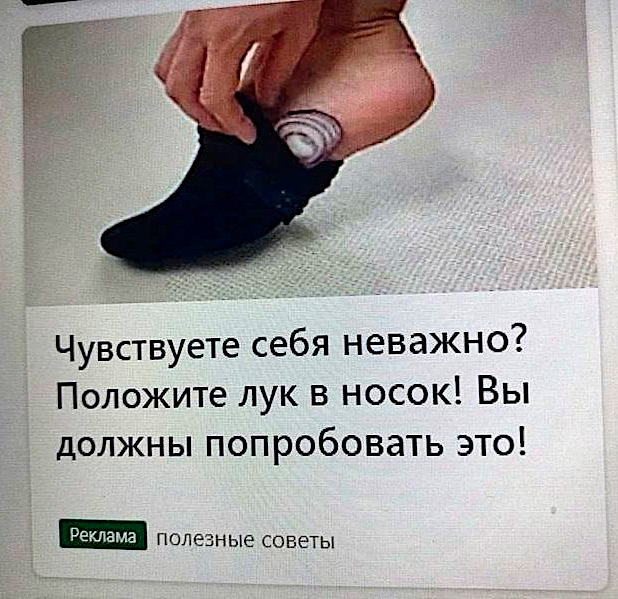 Полезные советы в действии! Чувствуете себя неважно? Положите лук в носок, после этого неважно себя будут чувствовать и все окружающие!
