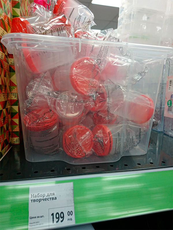 Если вы - человек творческий, замечает Юрий, то вот вам набор для творчества. А что вы ржете? Например, с трех метров в баночку - слабо попасть? Вот вам и творчество!