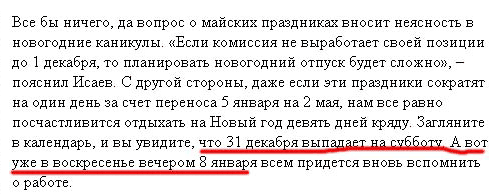 Господи, как это грустно, вздыхает Yar. 31 декабря выпадает на субботу, и уже на следующий день, 8 января, придется вновь вспомнить о работе!