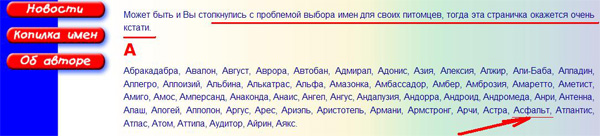 С именами тоже ничего смешного - написано же, что предлагаются имена вашим ПИТОМЦАМ, т.е. животным. Совершенно нормально кота назвать Асфальт...