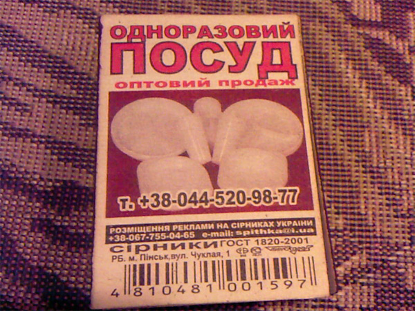 А в чём прикол с предпоследней картинкой? Этикетка на украинском языке. "Одноразовий посуд" - нормальное написание нормального словосочетания (в украинском - посуда мужского рода).
