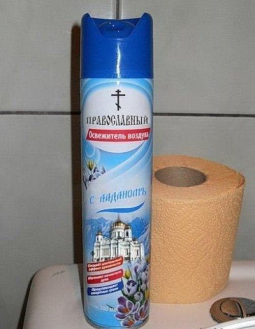 Думаю, на рядом с освежителем воздуха лежащей бумаге тоже неплохо какие-то полезные для прочтения всякому православному испражняющемуся письмена нанести...