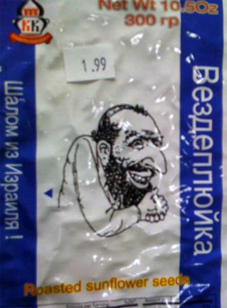 Дмитрий обнаружил в русском магазине в США вот такой оригинальный товар. Это семечки. Что именно курил дизайнер упаковки, даже сложно себе представить.