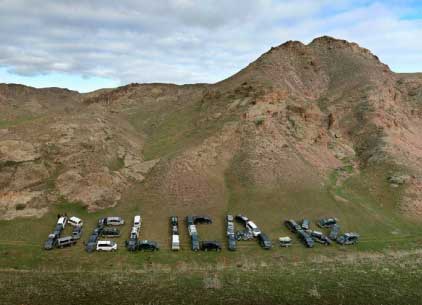 Евгений прислал не баннизм, но очень забавную картинку, на которой члены казахстанского клуба деликаводов выложили название сайта клуба телами своих машин.