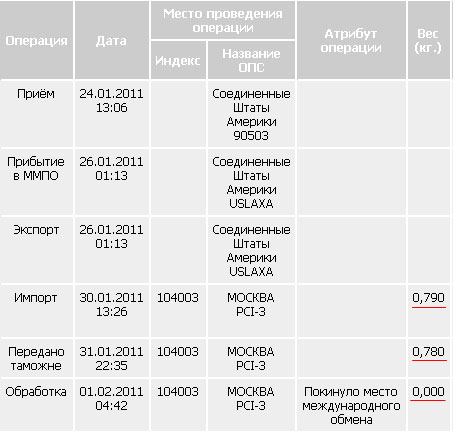 P.S.: вес посылки внезапно вернётся в операции "вручено адресату".