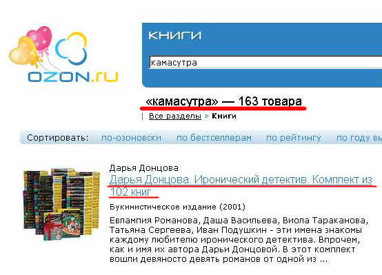 Если вы хотите секса, замечает Галина, его есть у "Озона". Причем много. Тот еще секс, на самом деле...