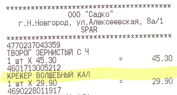 Получил Алексей в магазине чек - и аж заколдобился. Волшебный крекер! Просто волшебный!