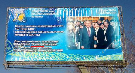 Для современного казахстанца, рассказал Евгений, совершенно обязательно владение ТРИМЯ языками, как сказано шИршавым Езыком плОката.