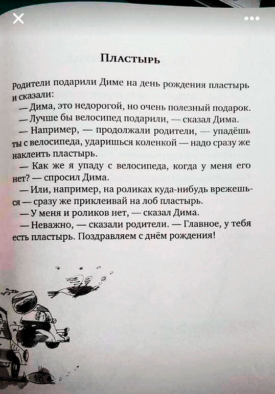 Познавательное чтение для детишек, радуется Дмитрий. И в нем есть мораль: дареному пластырю в ролики не смотрят!