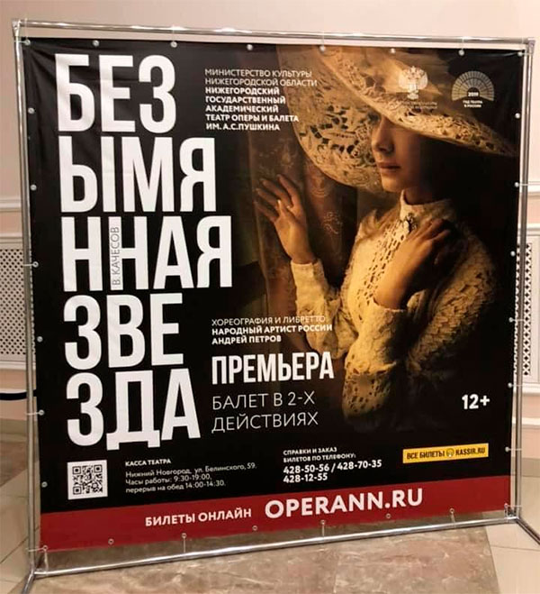 - разместить название спектакля и фото актрисы в соотношении 50/50 к площади плаката;