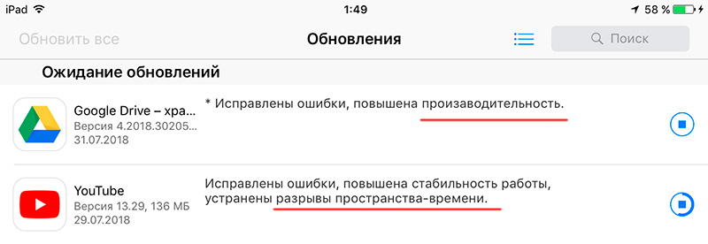 Лев рекомендует веселые обновления для айпэда. Google Drive повысил произаводительность, а YouTube и вовсе устранила разрывы пространственно-временного континуума.