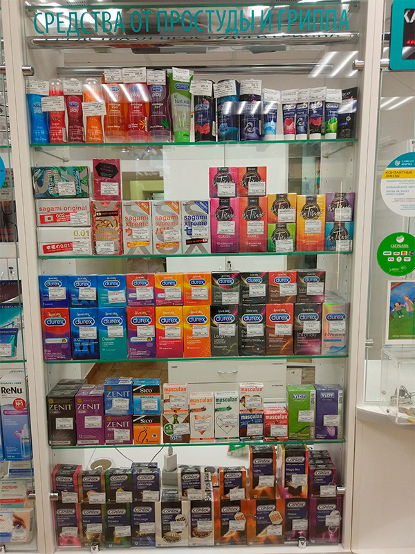 Алексей пытается понять, почему вот это стоит на стойке средств от простуды и гриппа.