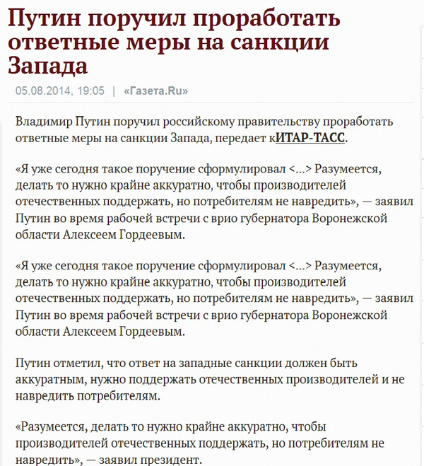 Зато... Крымнаш и запрет на украинские продукты.