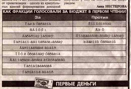 А говорят - цензура, цензура... В газете "Аргументы и факты" г. Киева, как поведала Julia Kuchmuk, совершенно честно рассказали, как прошло голосование за бюджет в первом чтении. Без прикрас. Невзирая на лица.