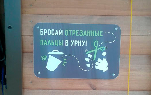 Вот такое вот кровожадное предложение в детском парке, ужасается Дмитрий. А всего-то дизайнер таблички поленился приписать слово "перчаток".