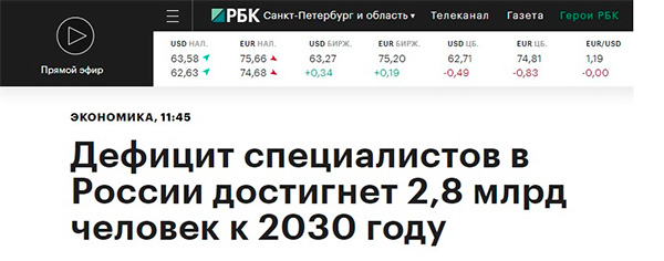 "РБК" снова зажигает, вздыхает Артем. На Земле живет 7,4 миллиарда, а к 2030 году будет дефицит специалистов в половину всего населения.