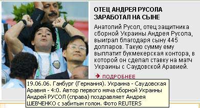 Есть в папе Андрея Русола, замечает Vij, что-то неуловимо футбольное. Вероятно, поэтому ему улыбнулось счастье! Целых 445 баксов! Теперь можно и третьи часы на руку купить - до кучи!