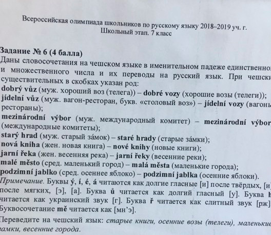 Вот да, насчет олимпиады - это задание по лингвистике, но так как её в школе не изучают, то прикрепили к родному языку. В конечном счете, это олимпиада, а не диктант или ЕГЭ.