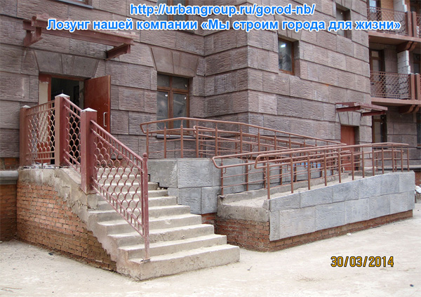 Генрих прислал фотографию подъезда сданного в эксплуатацию дома, в котором он купил квартиру. Забота застройщика об инвалидах-колясочниках и молодых мамах с младенцами просто потрясает. Посмотрите, какой шикарный пандус для них отгрохали!