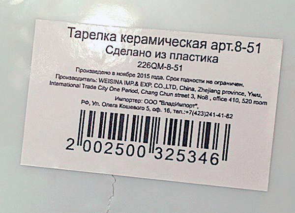 Бывает и такое, уверяет Гена. Тарелка керамическая, сделана из пластика методом обтравки металла.
