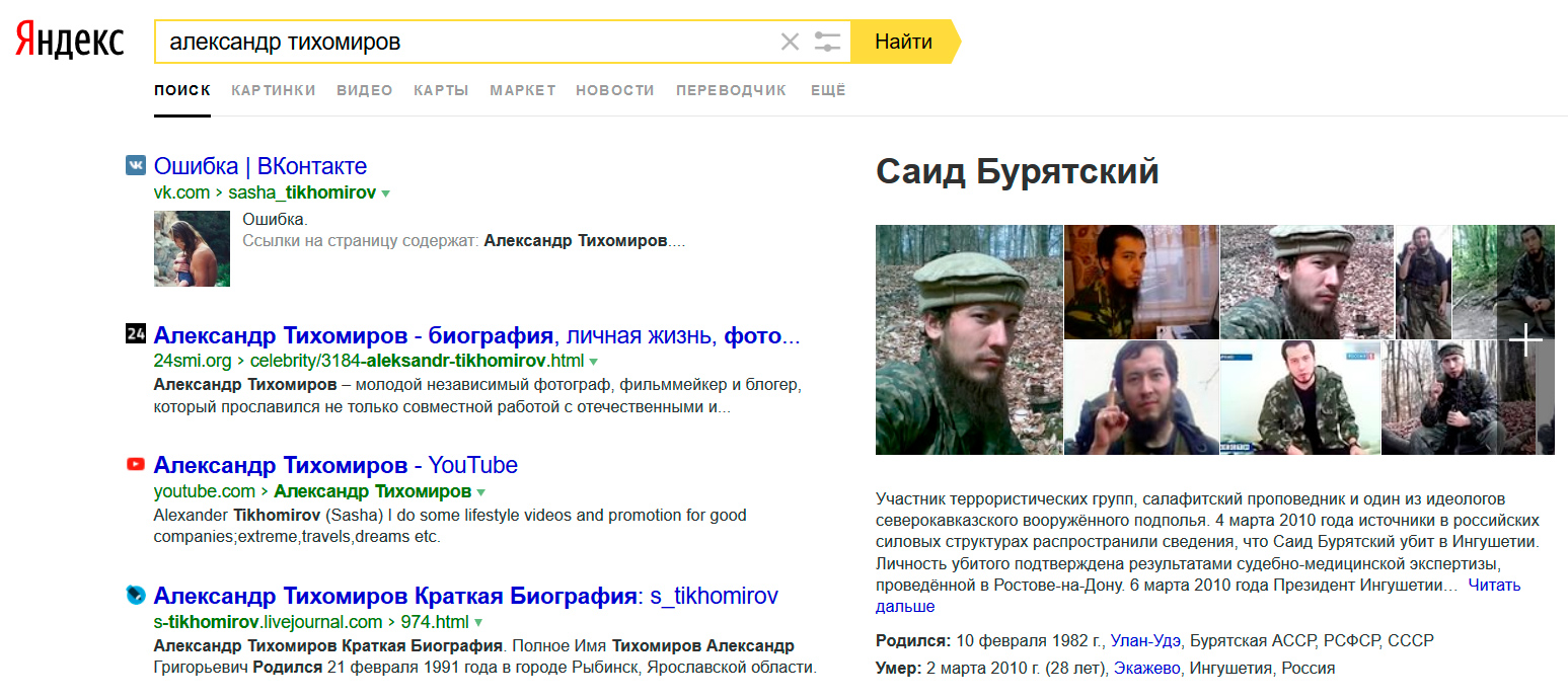 Как по мне вполне релевантный поиск, что выдал фотографии известного террориста первыми, а не какого-то молоденького гламурного фотографа-тёзки.