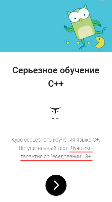 Виктор рекомендует поизучать С++ вот в этой компании. Вы же сами понимаете, лучшим гарантируется собеседование 18+. То есть как минимум речь идет о lapdance! Есть за что попрограммировать!