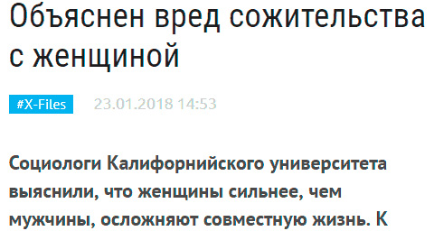 Неудивительно, что социологи Калифорнийского унивеситета объяснили вред сожительства с женщиной.