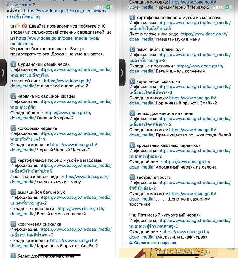 Перечень сельскохозяйственных вредителей в Таиланде, переведенный на русский, рассказала Лера. А поначалу кажется, что это перевод меню какого-то ресторана.