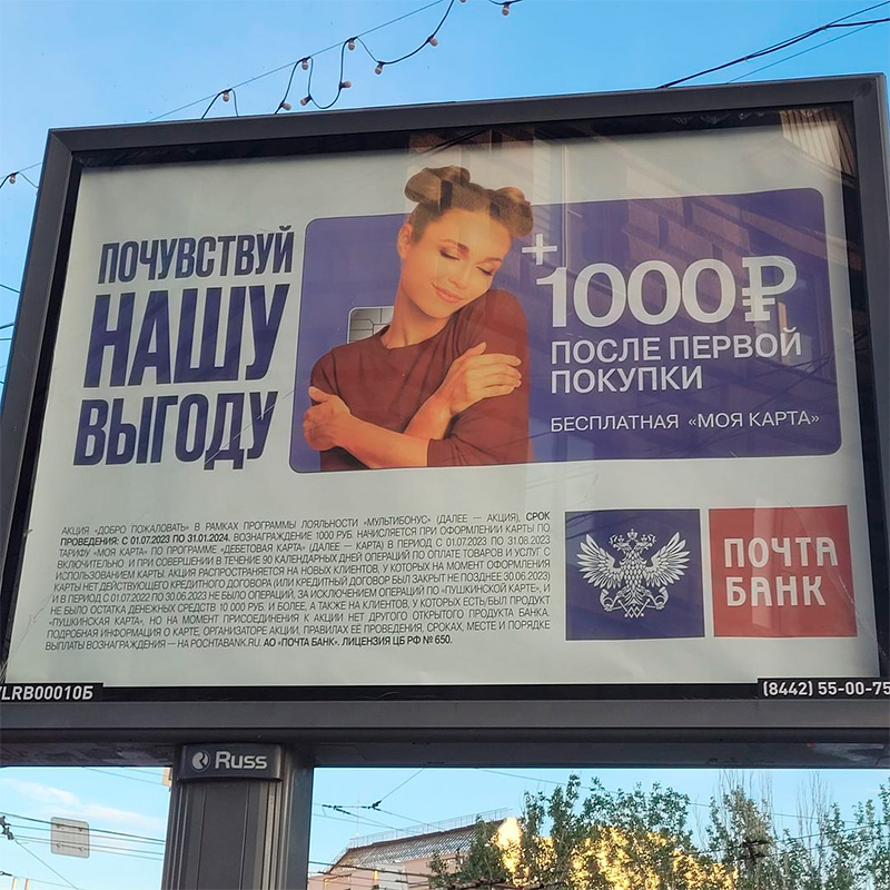 Это рекрутинговый плакат: "Поступай на работу в Почту России. Почувствуешь нашу выгоду!" 😄
