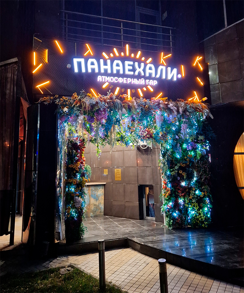 Берик пытается понять, какой именно атмосферы следует ожидать в баре с таким названием. Здесь что - злобно шипят вслед, а коктейли подают в нерезиновых бокалах, что ли?