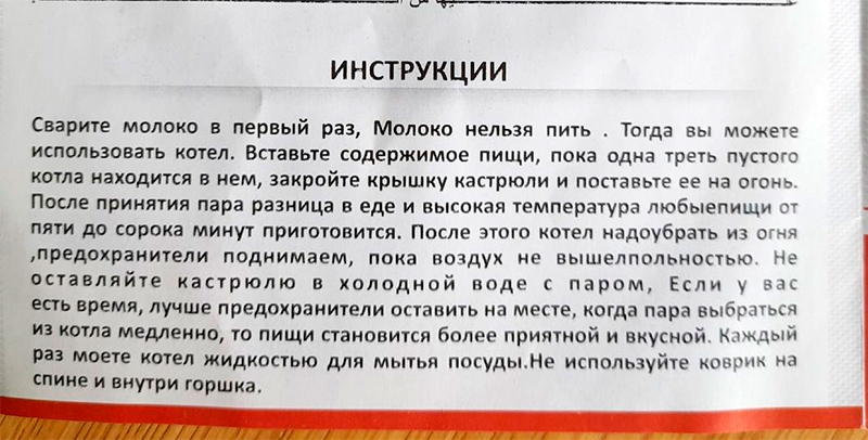 Когда китайцы сами переводят инструкцию на русский, рассказала Татьяна, то получается очень смешно.