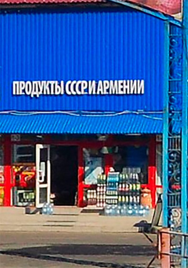 Но, впрочем, там есть и более загадочный магазин - вот такой. Продукты Армении - оно понятно. А что за продукты СССР? Как живший в СССР, я помню, что обычно там из продуктов было вдоволь березового сока и грузинского чая. А, еще всякие кости в мясном отделе продавались. Так тут-то что - березовый сок?