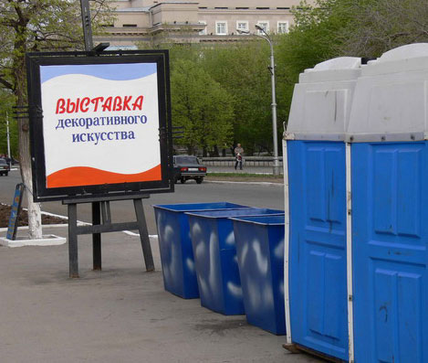 Смотрите, как мило раскрашены помойные баки и сортиры. Чистое искусство!