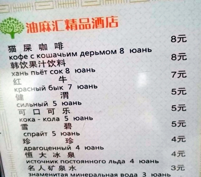 Я не поленился и перевёл иероглифы с ценника про кофе.