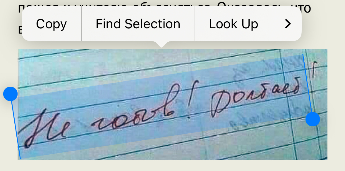 Не знаю как Гугл, но айфон позволяет копировать текст с картинки. Причем даже рукописный (пример на картинке. Распознал как « Не готов! Достаст»)