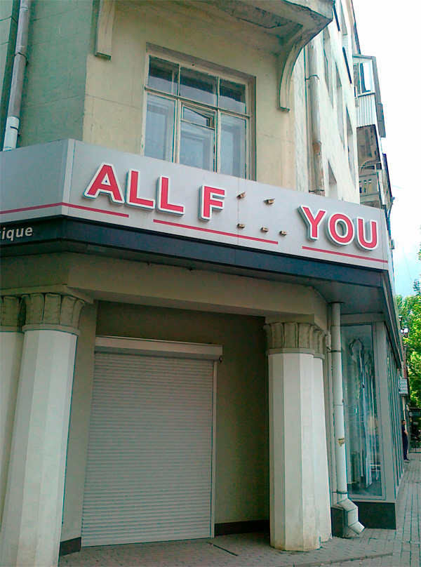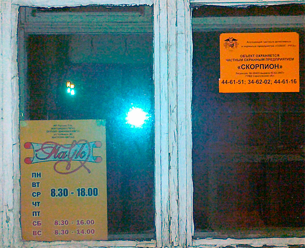 Какие поразительно грамотные люди работают в этой шарашкиной конторе, замечает Александр. Сделать две грубейших ошибки в собственной вывеске - это надо уметь!