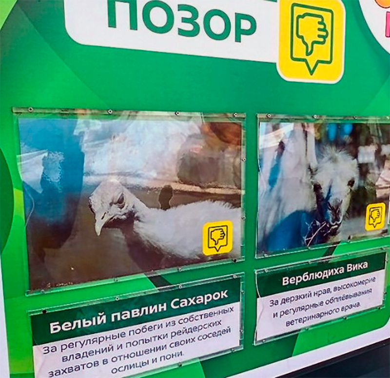 Доску позора в дельфинарии мы уже видели, а теперь доска позора в зоопарке! Белого павлина Сахарка заклеймили!