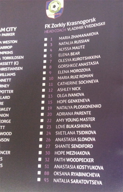 Иван был на матче женской Лиги чемпионов по футболу "Бирмингем" - "Зоркий" и сфотографировал программку. Состав российской команды - это что-то с чем-то! Елена Медведь,